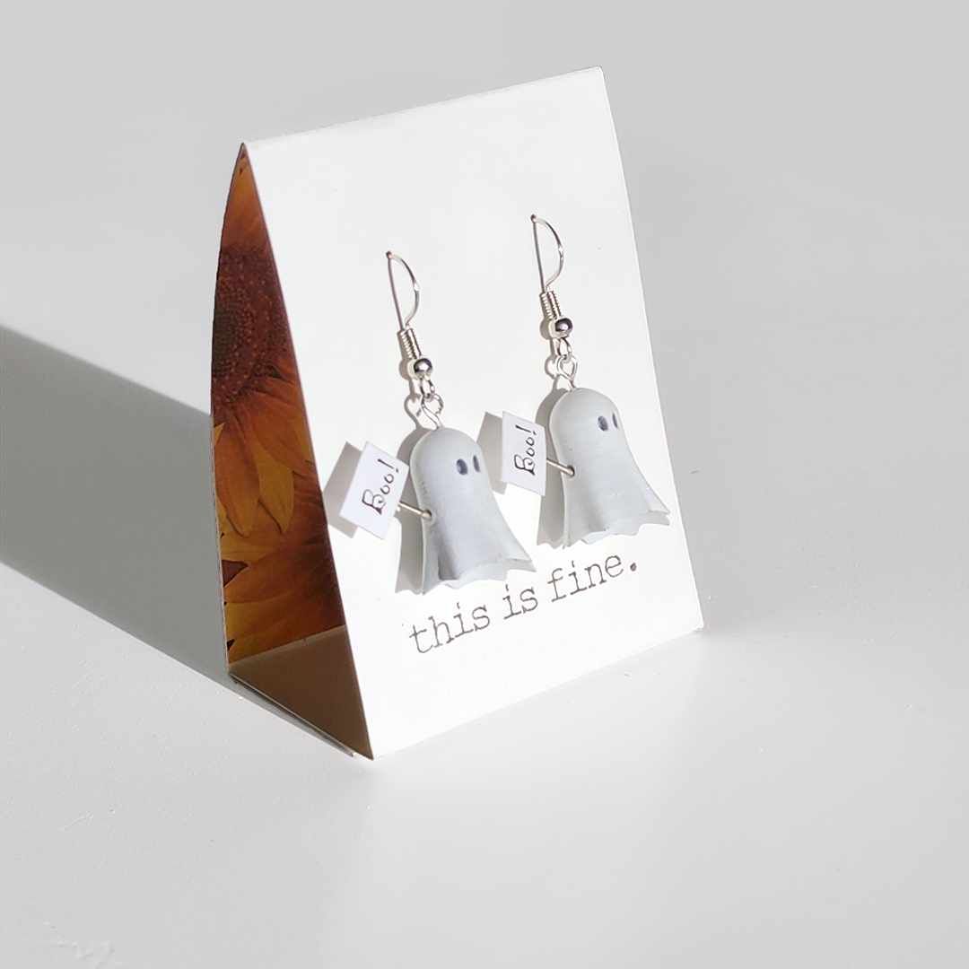 The perfect distraction from the existential dread 🥲 Features: 👻 Detailed Design: Each earring is precisely created using 3D printing. 🎨 Vibrant Colors: I hand-paint every earring, so each piece is it’s own piece of art! 🌿 Lightweight and Comfortable: These are made with a durable, lightweight material, so they’re comfortable all day. 🌟 Bold and Playful: They’re a conversation starter whether you want to talk to people or not.