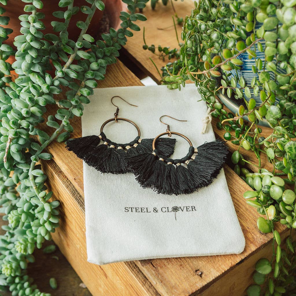 A twist of class with a flair of playfulness - the Abigail Tassel Earring adds the perfect measure of personality to any look with its dramatic shape and rich colours. So lightweight, you would almost forget you have them on, if not for the heads that they are bound to turn. Great for the boho bride or as a staple to spice up your everyday wardrobe.