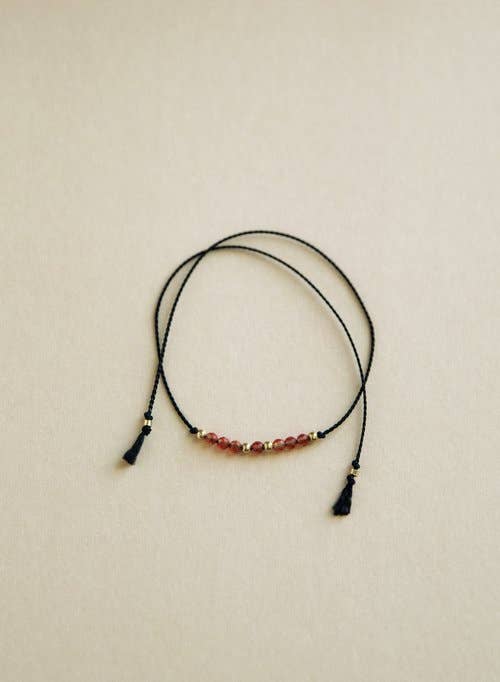 Beautiful, dainty and minimalistic string bracelet made from 100% silk string, natural faceted carnelian quartz, and 14K gold-filled beads. 11 beads in total.