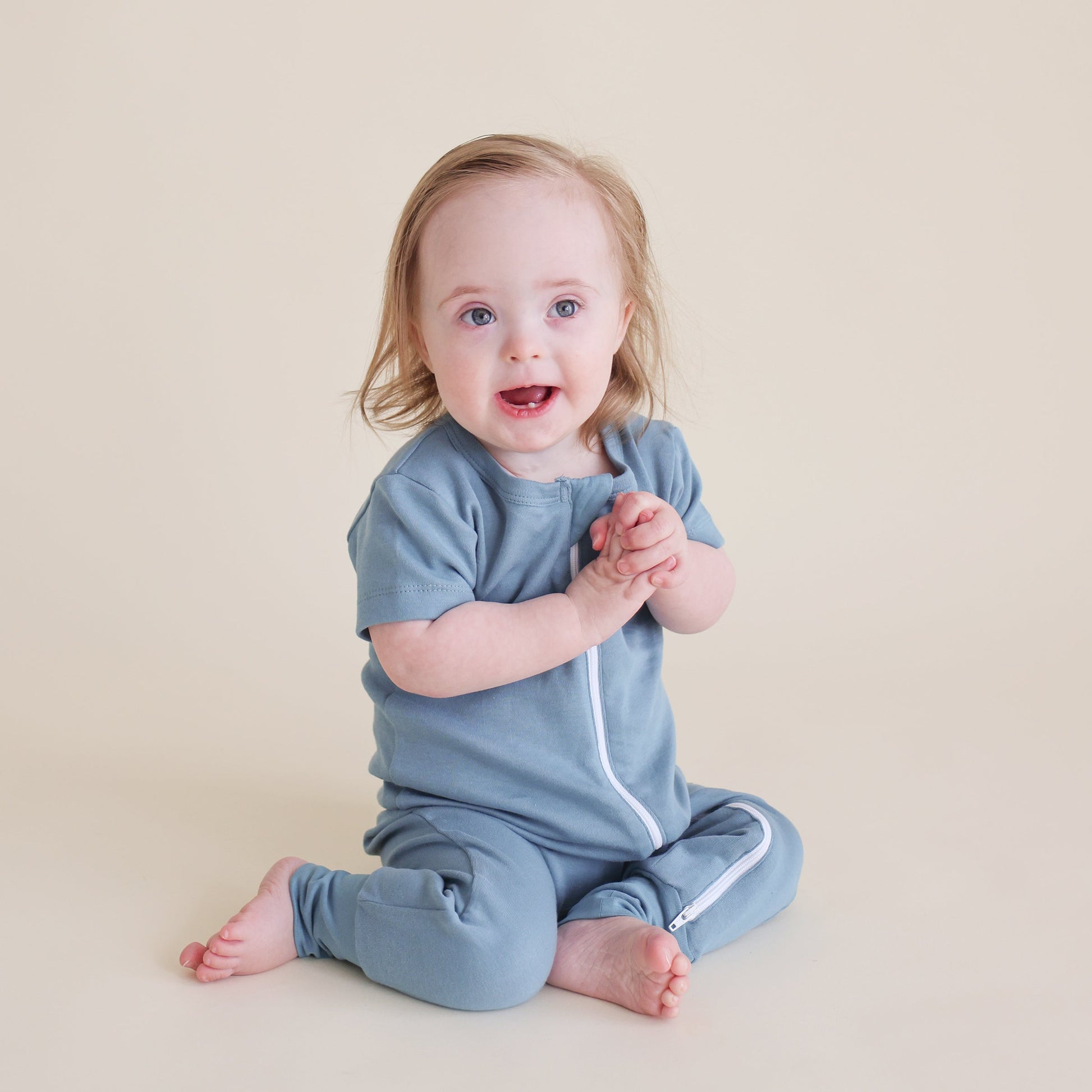 Baby 2 way zip romper ocean blue-parade