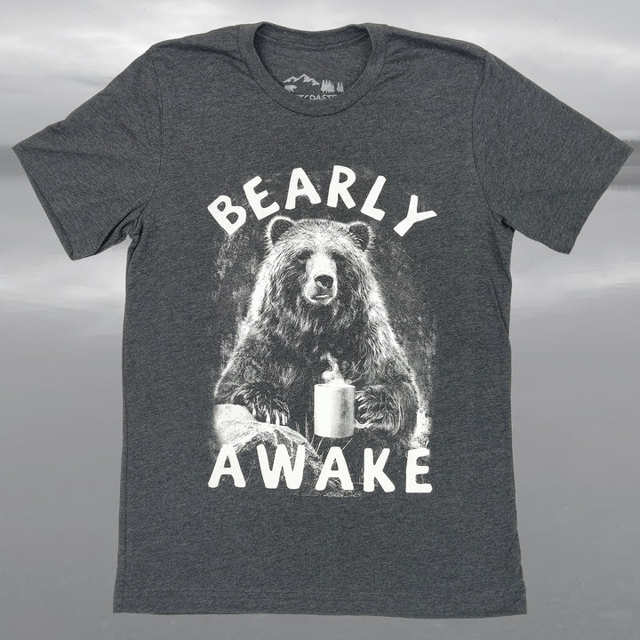 Hard to open the old peepers? Got a little case of the early morning Monday blues? No problem. We have you covered with our good friend Bearly Awake! Printed on a Poly-Cotton (50% Polyester / 50% Combed-Cotton) T-shirt. Unlike other Poly-Cotton T-shirts, our shirts are made with combed cotton, giving it a soft, worn in feel, superior drape, excellent colour fastness and durability throughout multiple washes.
