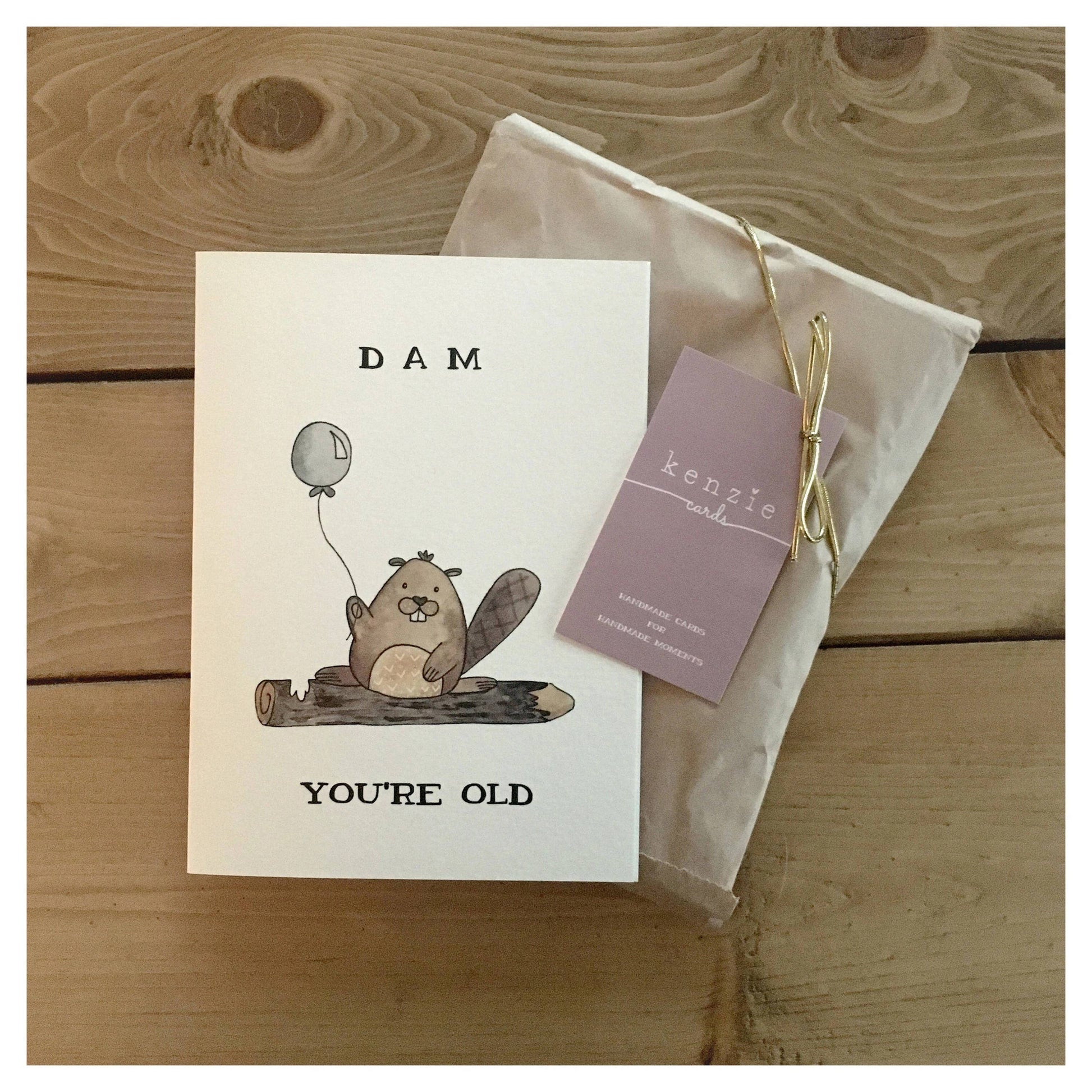 Cute and Quirky Handmade Greeting Cards. Beaver-themed Birthday Card.