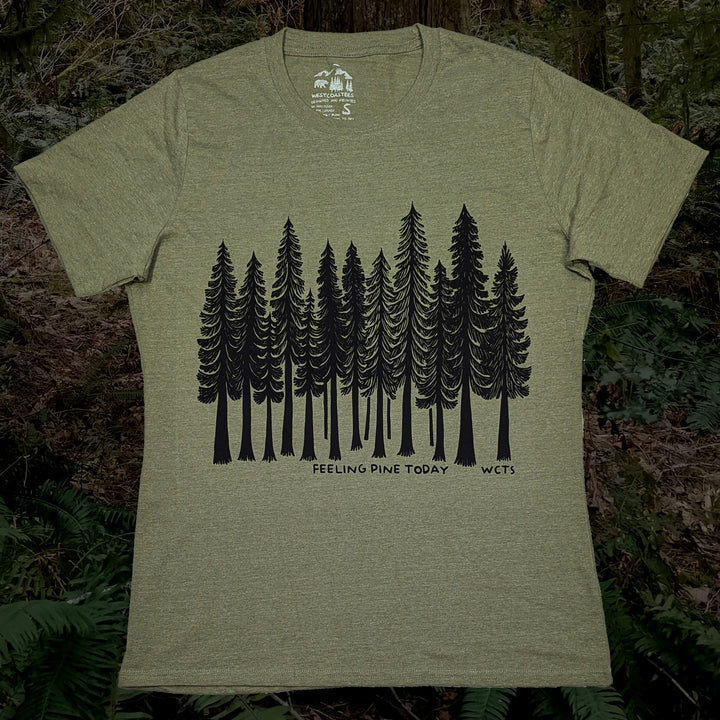 Feeling Pine Today design is printed on a Poly-Cotton (50% Polyester / 50% Combed-Cotton) T-shirt.