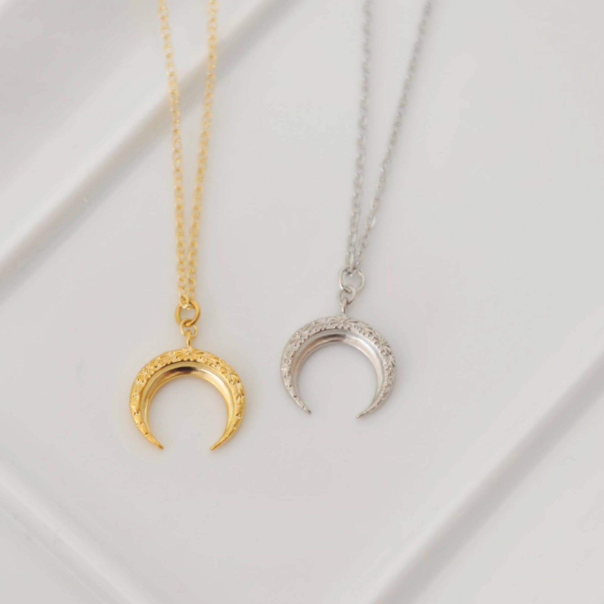 Floral Crescent Moon Necklace