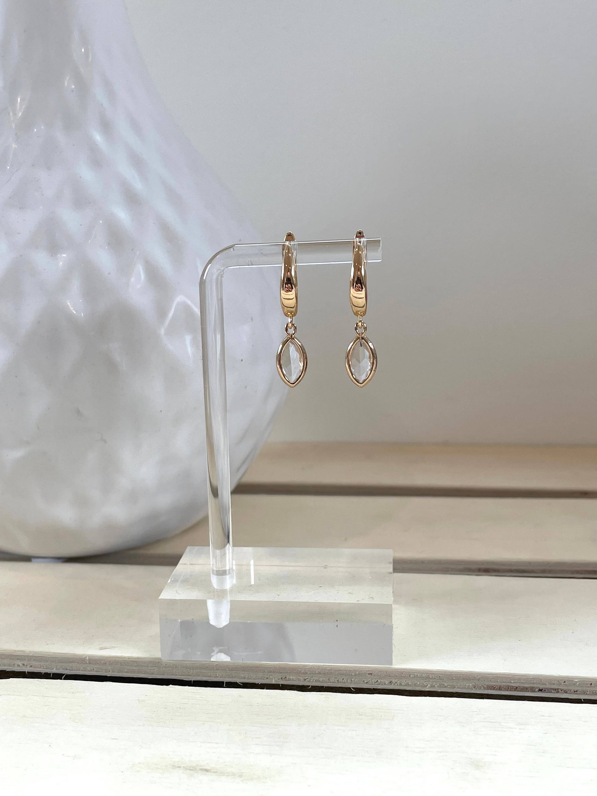 Experience the elegance of Clover + Coast Designs with our Gold Plated Huggie with Charm - Crystal. These 18k gold plated huggies are crafted with precision on a 16mm hoop, adding a touch of sophistication to any outfit. The attached charm enhances the beauty of the earrings, making them an irresistible addition to your jewelry collection. Whether you prefer simple minimalism or bold edgy styles, these earrings cater to every taste. Made from locally sourced materials, these earrings embody the brand's commitment to quality and style.