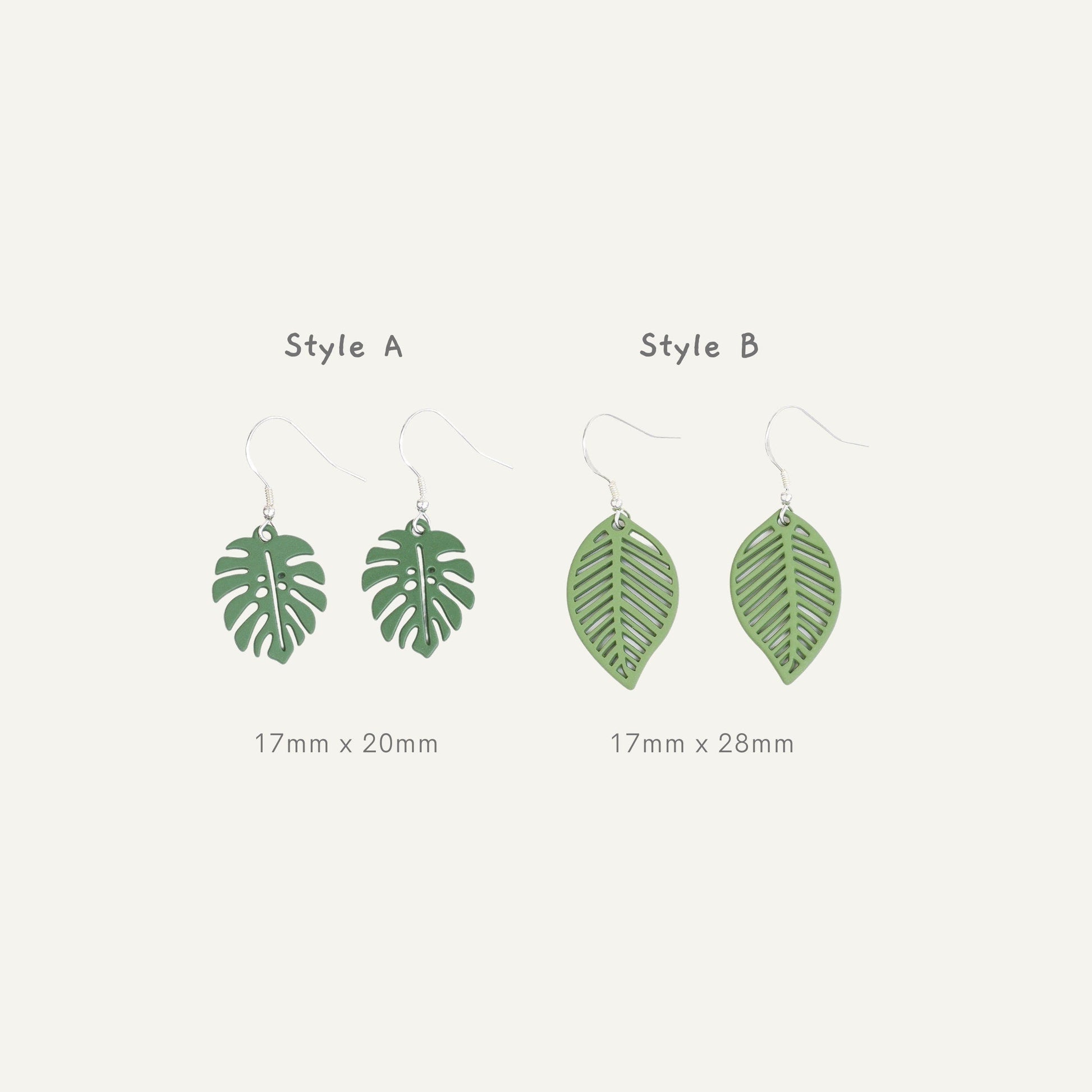 Introducing our Green Leaf Dangle Earrings - the perfect addition to your spring jewelry collection! These minimalist statement earrings feature two styles of green leaves - monstera and a delicate dainty leaf - making them a unique and beautiful accessory to any outfit. Handmade with love and care, these earrings are crafted from high-quality materials to ensure they are long-lasting and durable. The green colour of the leaves adds a touch of nature and freshness to any look, making them perfect for spring and summer.