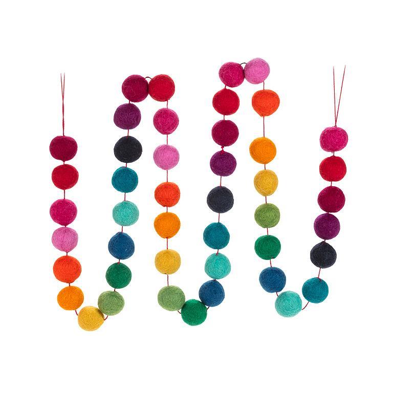 Bring a touch of Christmas magic to your decorating with our Rainbow Pompom Garland. Drape the felt pompoms over a doorframe, mantel or bannister as is or with added lights and ribbon for a festive display full of holiday cheer. Handcrafted in Nepal by local female artisans, this fair trade-certified trivet is made with 100% sheep wool — a beautiful way to support a sustainable global economy.