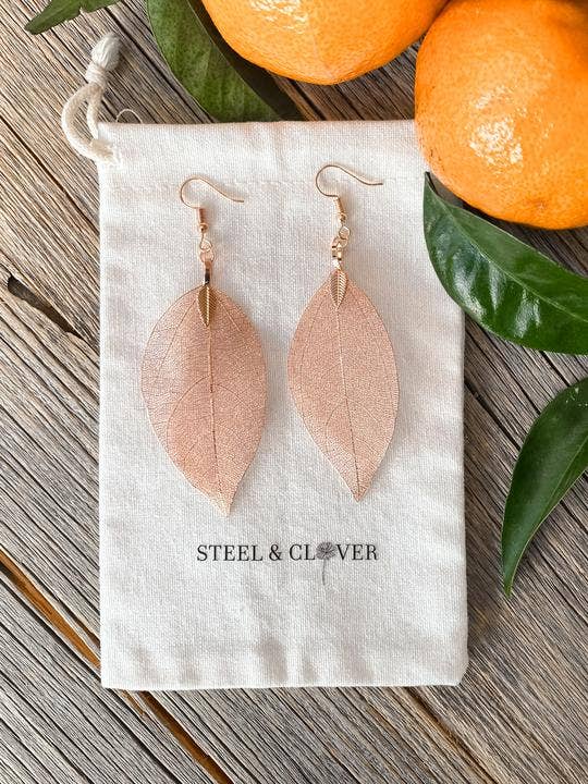 Full of natural beauty and elegance, these delicate earrings are made from real leaves. Their lacey veins are full of incredible detail, which has been beautifully preserved by the copper electroforming process. Light and lovely, but strong enough for everyday wear. Due to the beautiful variations in nature, each leaf is paired with a similar mate, but slight differences are to be expected.