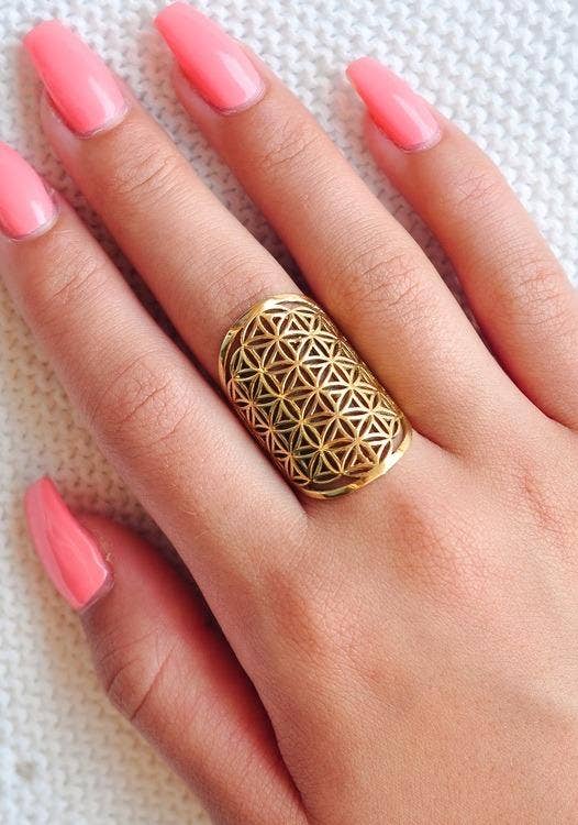Flower of Life Ring -Brass