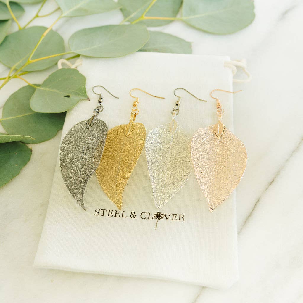 Silver Real Leaf Earrings