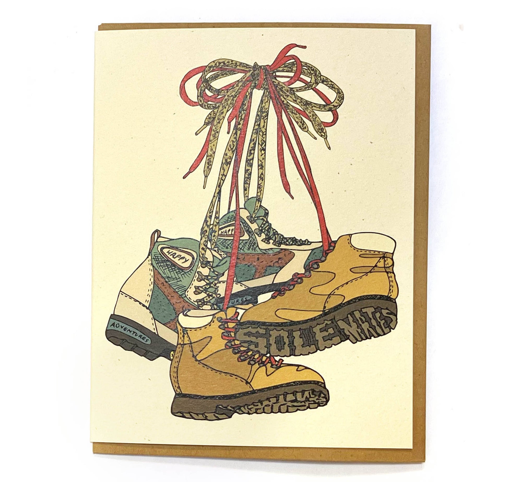 For the couple that is on a wild and wonderful adventure. With a pair of classic hiking boots hanging and ready for the trails ahead.