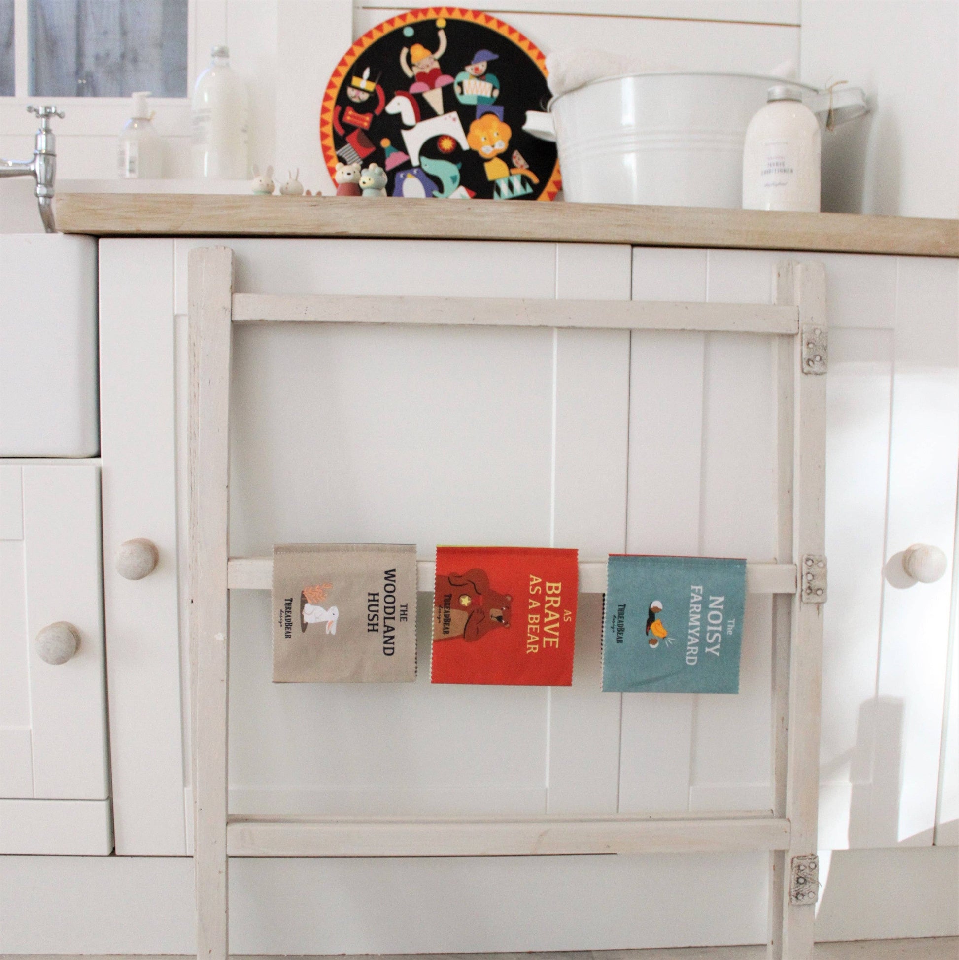 Screen printed onto 100% cotton, and finished with a retro style pinking sheared edge, these little books are the perfect gift for any little one developing their social and color recognition skills.